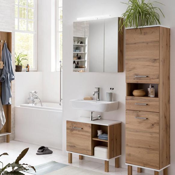 In unserem Bereich Badmoebel finden Sie Spiegelschraenke sowie eine Vielzahl weiterer Produkte. Beim morgendlichen Zurechtmachen sind Schminkzubehoer Buerste oder Rasierutensilien darin jederzeit geordnet zur Hand. Gewoehnlich versandfertig in 3 bis 5 Wochen.
