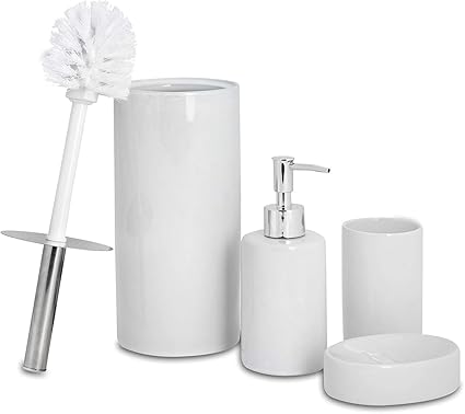 Harbour Housewares Weiss Keramik Badezimmer Set Mit 4 Teilen Inklusive Toilettenburste Seifenspender Seifenschale Und Zahnburstenbecher Amazon De Kuche Haushalt