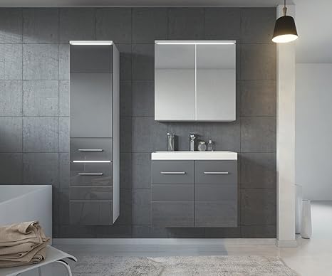 Badezimmer Badmobel Toledo Led 60 Cm Waschbecken Hochglanz Grau Fronten Unterschrank Hochschrank Waschtisch Spiegelschrank Amazon De Kuche Haushalt